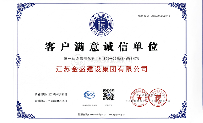 • 2007年江蘇省質量信得過安全穩定施工企業
